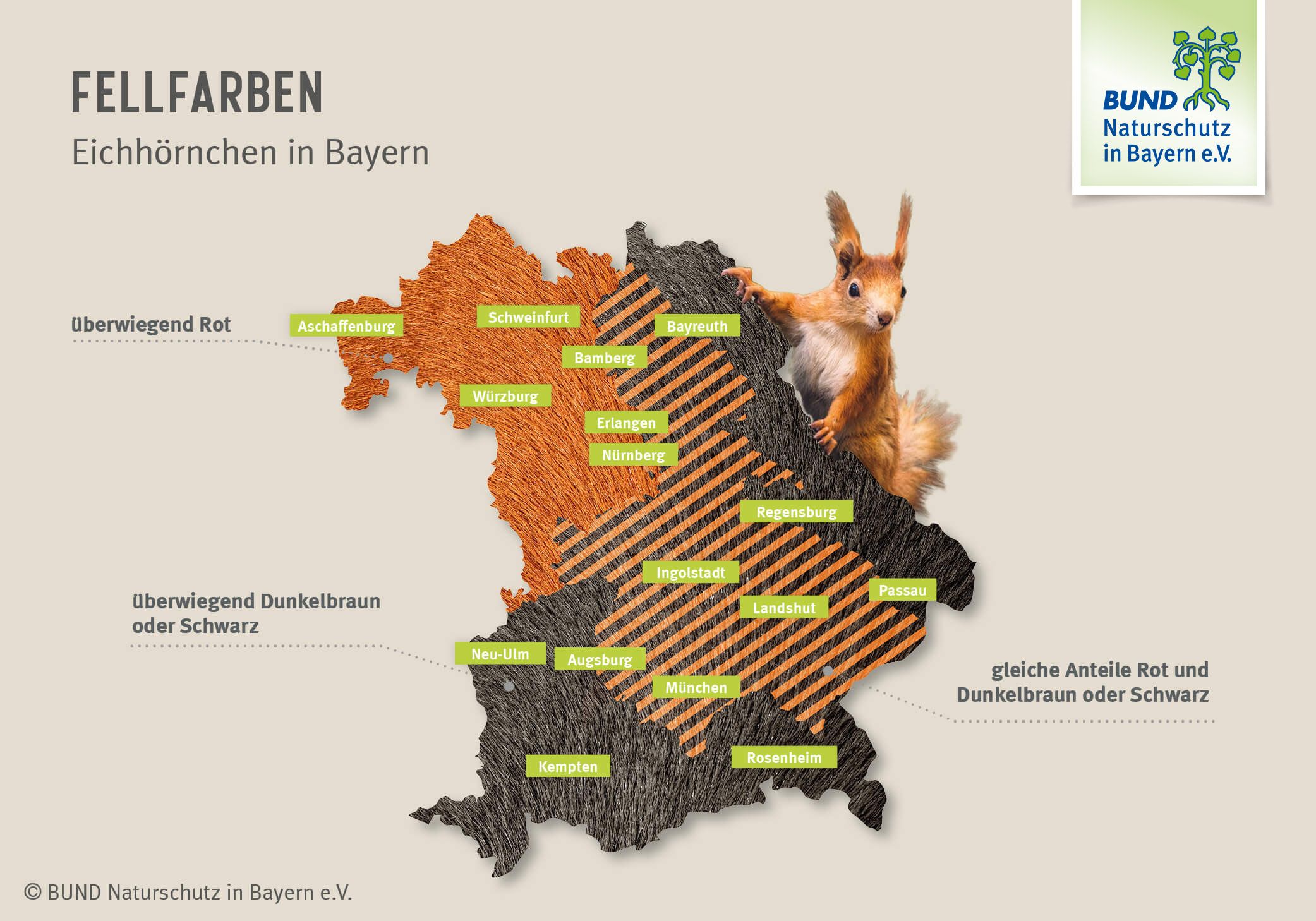 - In Nordwestbayern dominieren weiterhin rote Eichhörnchen.