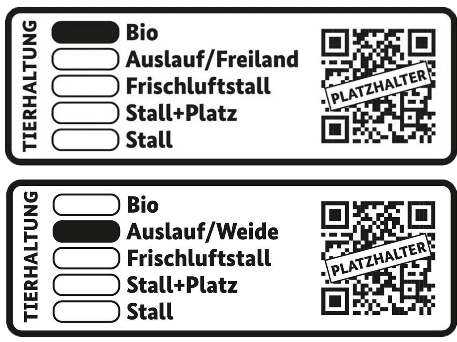 - Staatliche Tierhaltungskennzeichnung, "Auslauf/Weide" oder "Bio"