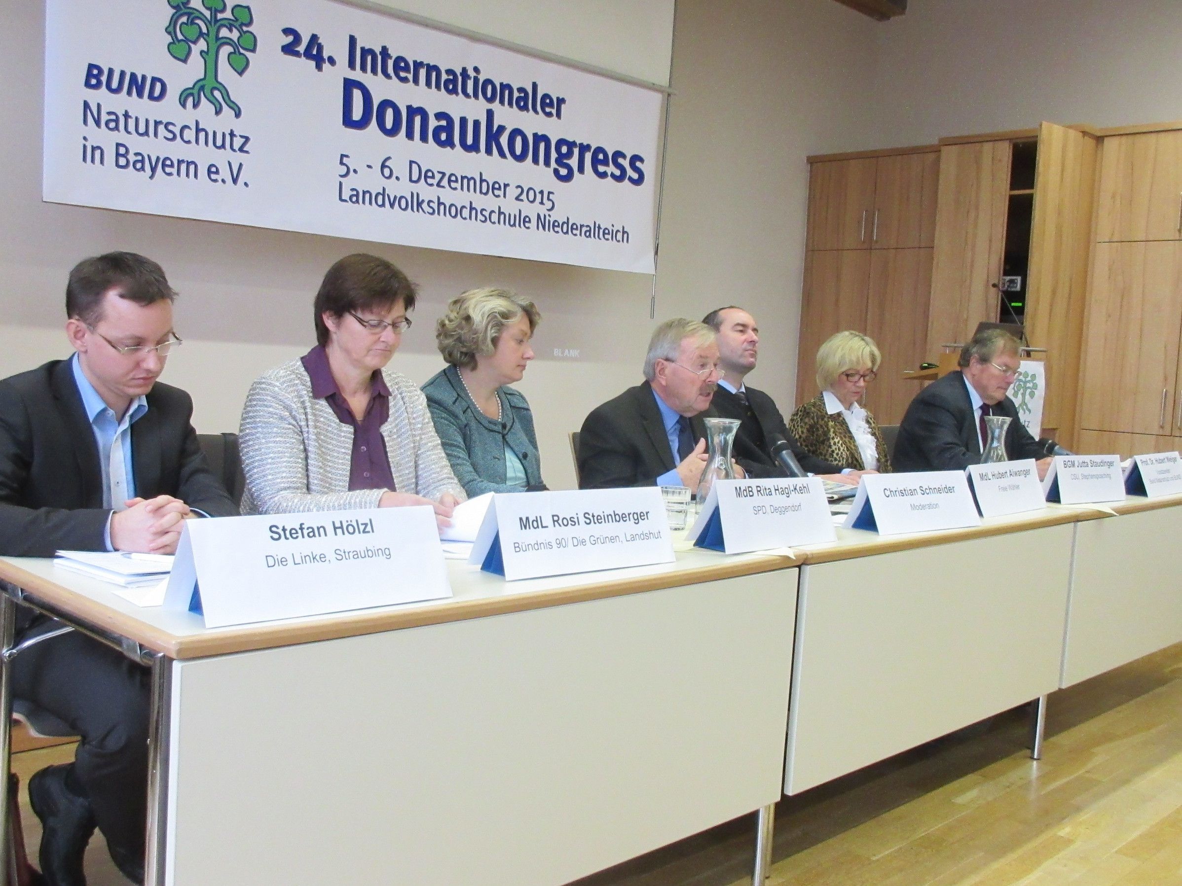 Am Sonntag, den 4. Dezember ab 10:30 Uhr widmen sich in einer politischen Podiumsdiskussion Vertreter der im Bundes-, Landes- und Europaparlament vertretenen Parteien der Zukunft. Thema ist die „Donauraumstrategie der Europäischen Kom-mission“ und deren Konsequenzen für den Ausbau der Wasserstraße Donau, sowie für Naturschutz, Landnutzung und Hochwasserschutz. Mit MdL Hans Ritt (CSU), MdB Rita Hagl-Kehl (SPD), Dr. Georg Meiski (Freie Wähler), MdL Rosi Steinberger (Bündnis 90 / Die Grünen), Stefan Hölzl (Die Linke), MdEP Prof. Dr. Klaus Buchner (ÖDP) und Prof. Dr. Hubert Weiger (BUND Naturschutz) besetzen hochkarätige Vertreter das Podium. Moderator Christian Schneider wird die Diskussion in bewährter Weise leiten und auch das Publikum ausreichend zu Wort kommen lassen.