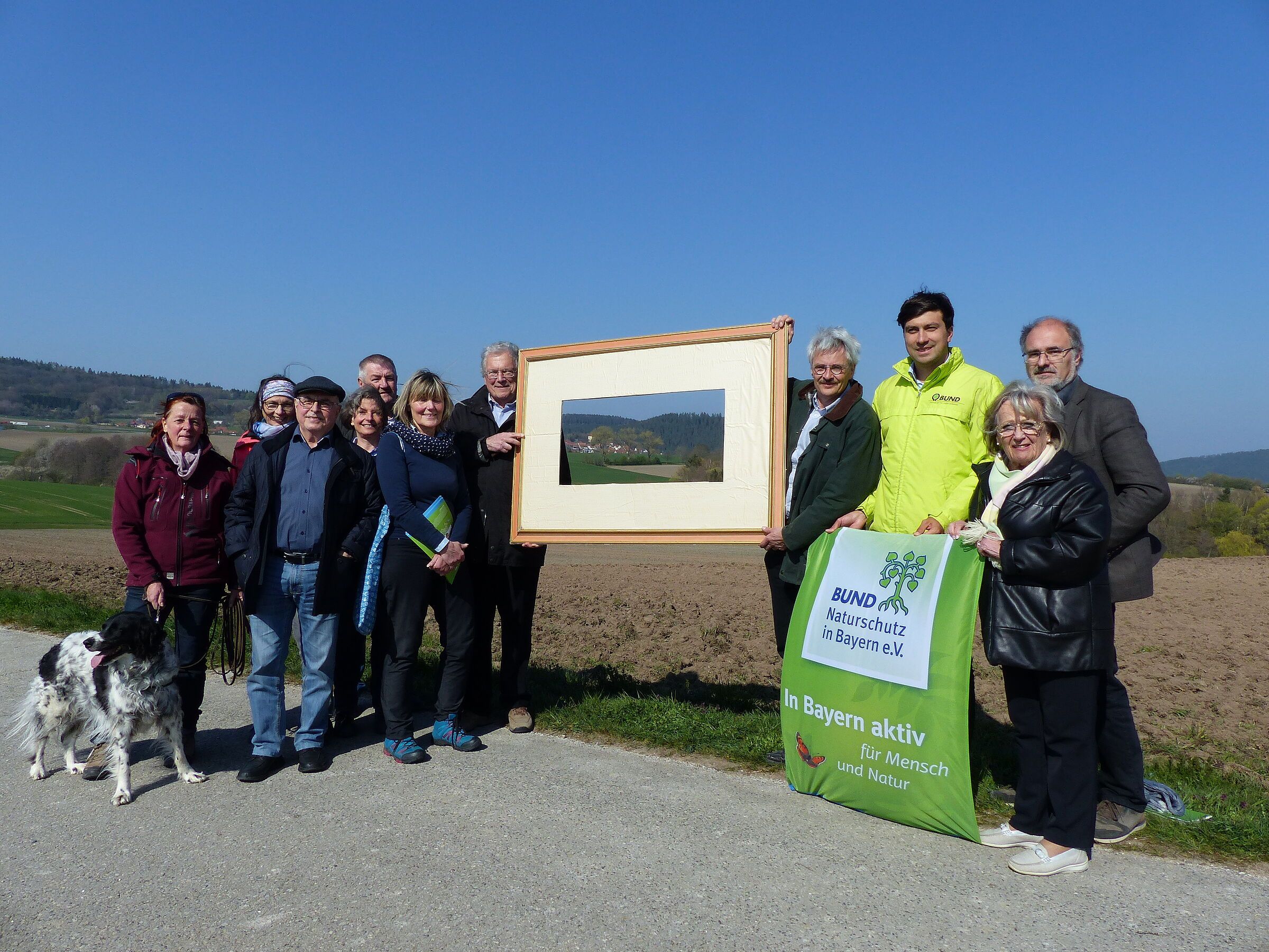 2019 machte sich der BN-Landesvorstand ein Bild von der Landschaft um den Lerchenhof und die Auseinandersetzung um die geplante Straße (am Bilderahmen von links: Elisabeth Hoffmann (Vorstand KG Kronach), Prof. Dr. Hubert Weiger (BN-Ehrenvorsitzender), Richard Mergner (BN-Landesvorsitzender), Martin Geilhufe (BN-Landesbeauftragter), Ingeborg Seidel (BI Johannisthal)