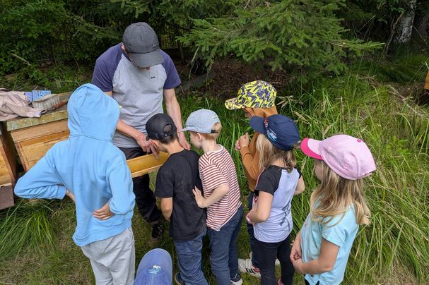 Kindergruppe Fischbach („Freche Dachse“) zu Besuch beim Imker