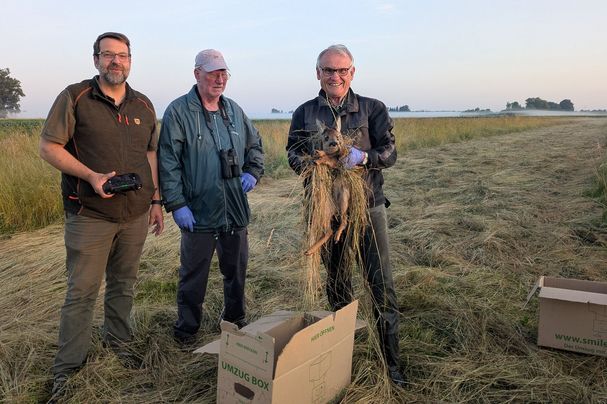 Landwirt, Jäger und Naturschützer arbeiten bei Kitzrettung zusammen