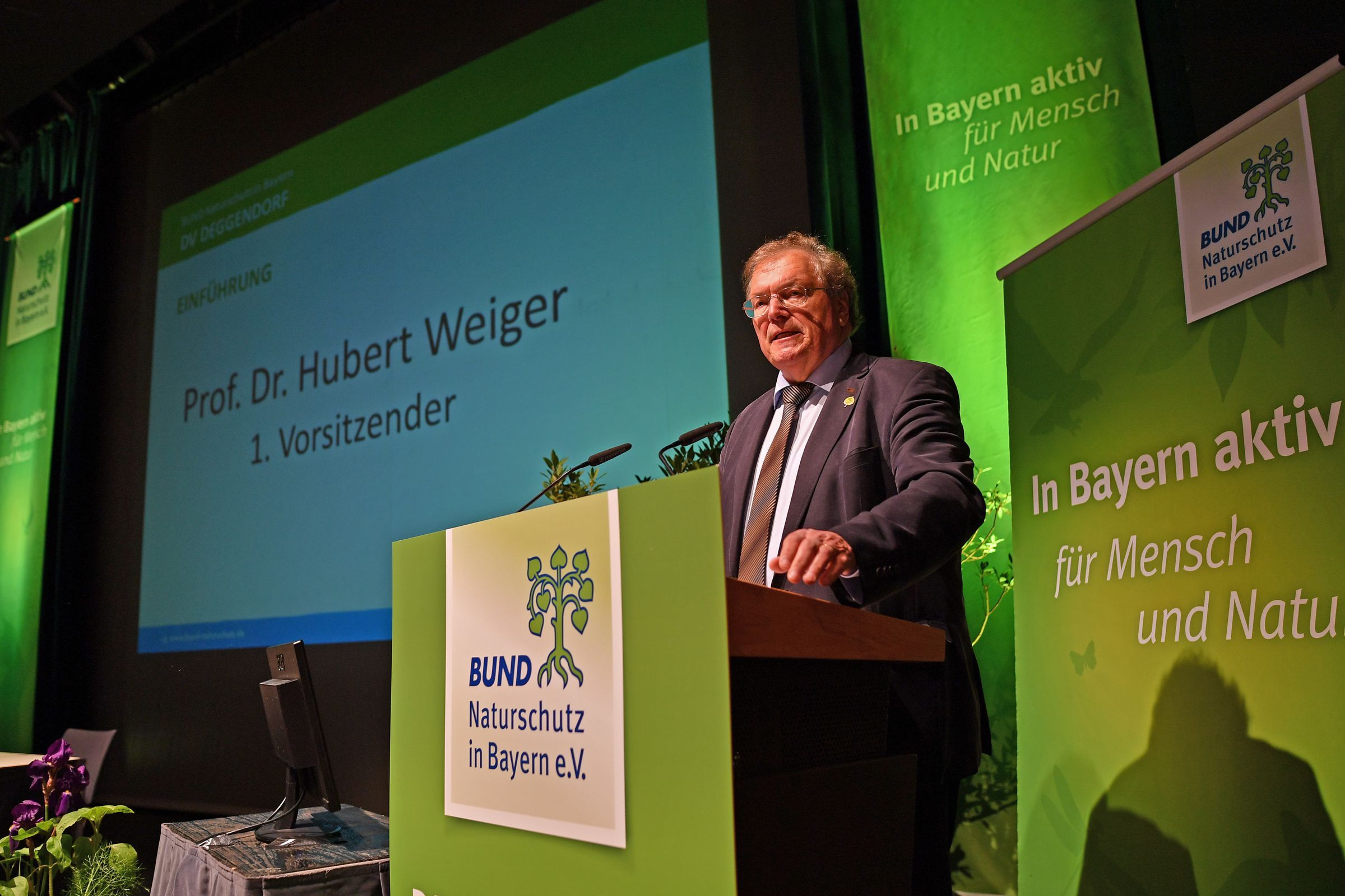Der BN-Vorsitzende Hubert Weiger wurde mit überwältigender Mehrheit wiedergewählt, ebenso seine Stellvertreter Doris Tropper und Sebastian Schönauer. Die Delegiertenversammlung ist das oberste demokratische Organ des BN. Sie beschließt den Haushalt und legt die große Linie des Verbandes fest. Zu Gast beim BN war Bayerns Landwirtschaftsminister Helmut Brunner.