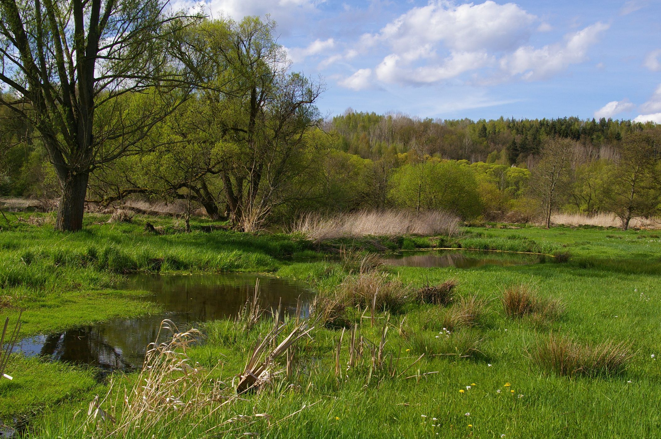 Beispiel für den gelungenen Einsatz für Erhalt und Entwicklung des Grünen Bandes sind die Feuchtflächen des BN bei Fischern, ganz im Osten des Landkreises Wunsiedel. Der Übergang des Fichtelgebirges ins Egerer Becken bildet eine großartige Auenlandschaft. „Wir befinden uns hier an einem der interessantesten Punkte im Grünen Band des bayerisch-böhmischen Grenzstreifens und einem Kristallisationspunkt des Arten- und Biotopschutzes mit hoher Symbolkraft“, so Fred Terporten-Löhner, 1. Vorsitzender des BN Wunsiedel. Direkt verzahnt sind hier die Grundstücke des Bundes Naturschutz mit tschechischen Biotopen, gleichsam ein Symbol für die freundschaftliche Zusammenarbeit der BN-Kreisgruppe Wunsiedel mit dem tschechischen Nachbarverband des ČSOP in Eger/Cheb seit 1990. Der BN hat hier bereits 2002/2003 fünf Wiesengrundstücke mit 2,5 Hektar erworben, seit 2005 wurden unterschiedlichste Maßnahmen wie Beweidung und die Anlage von Tümpeln und Brachestreifen umgesetzt und so wertvolles Feuchtgrünland erhalten und entwickelt – hier haben der Fischotter, gefährdete Libellenarten, wie die Gemeine und die Grüne Keiljungfer, eine Heimat gefunden. Vogelarten wie Schlagschwirl, Eisvogel, Rohrweihe, Schwarzstorch, Braunkehlchen, Bekassine und Waldwasserläufer nutzen das Gebiet als Rückzugsraum. In vorbildlicher Weise grenzübergreifend arbeitet hier auch Baumeister Biber und trägt nachhaltig zum Erhalt der Artenvielfalt und zum Hochwasserschutz bei.