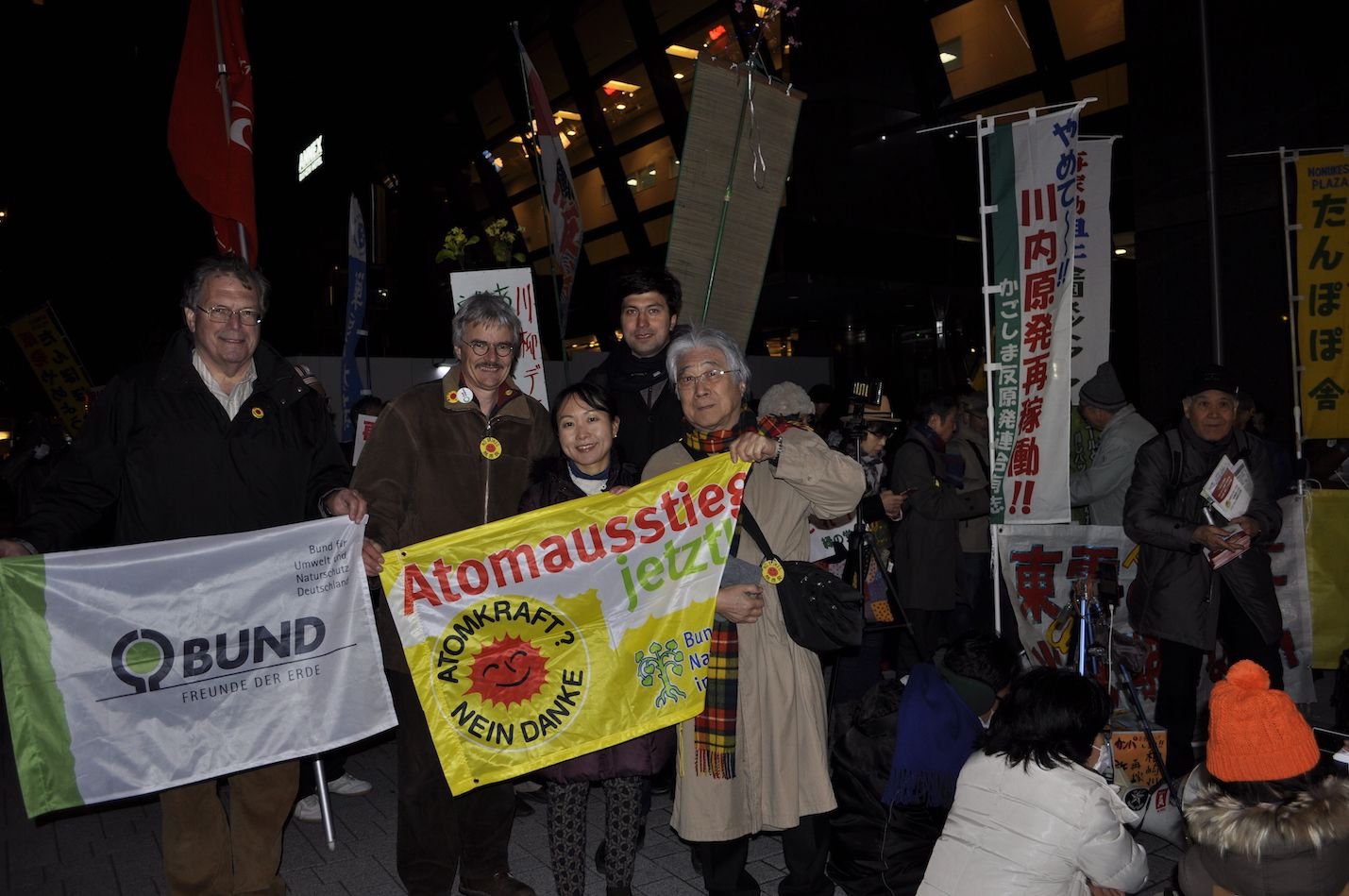 Auf Einladung der Partnerorganisation Friends of the Earth Japan (FoE Japan) und der Friedrich-Ebert-Stiftung (FES) nahmen der BUND-Vorsitzende Hubert Weiger, der BUND Naturschutz Landesbeauftragte Richard Mergner und Martin Geilhufe, BN-Referent für politische Kommunikation an mehreren Anti-Atom-Großdemonstrationen und Energiewendesymposien in Tokyo und der Region Fukushima teil. Die japanisch-deutschen Beziehungen des BUND Naturschutz bestehen seit knapp zwanzig Jahren. Seit der Atomkatastrophe sind die Beziehungen intensiviert worden. Ziel der inzwischen dritten Reise in die betroffenen Gebiete war es, direkte Informationen zu den Folgen der Atomkatastrophe zu bekommen, mit den Betroffenen zu diskutieren und mit den Erfahrungen aus Deutschland auch in Japan den Atomausstieg und eine Energiewende voranzubringen.