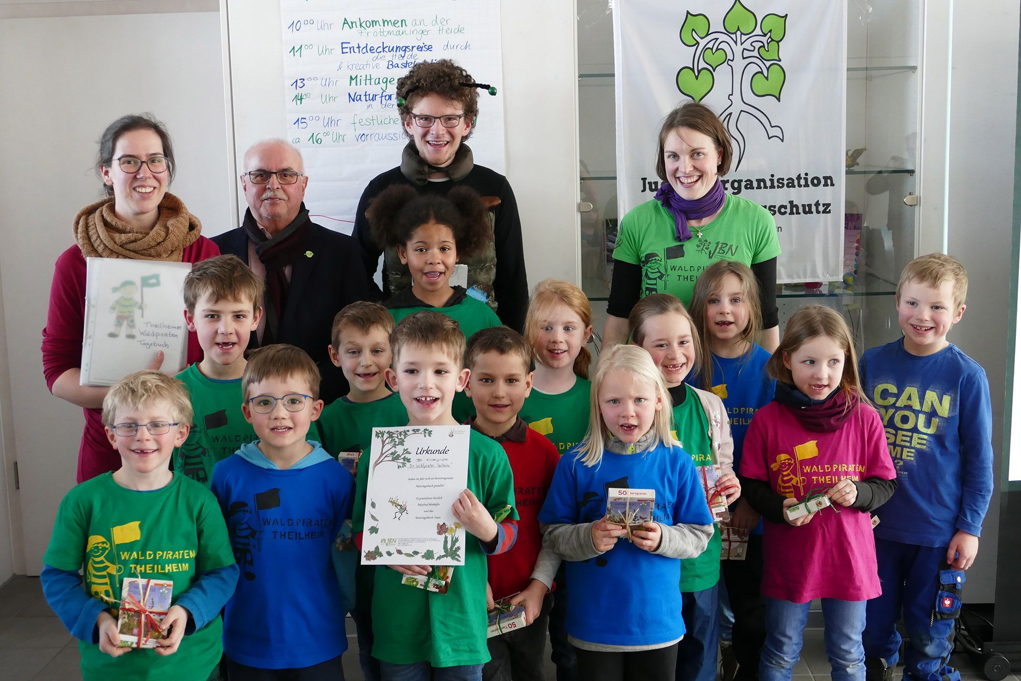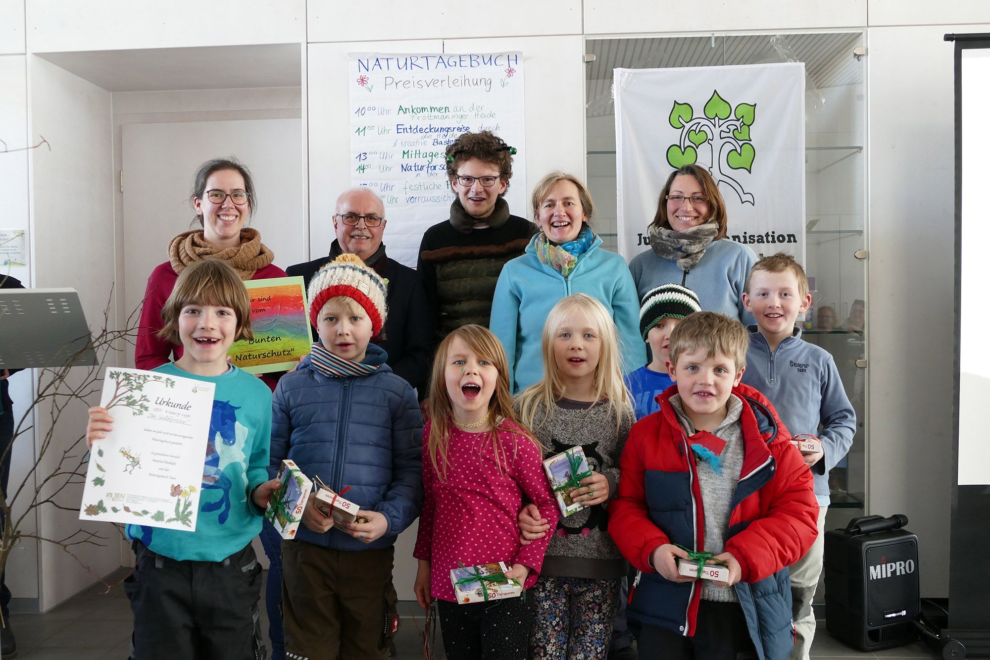 „Manfred Mistkäfer“ und sein Team verleihen an 55 junge Naturschützer die „JBN Naturtagebuch Urkunde“