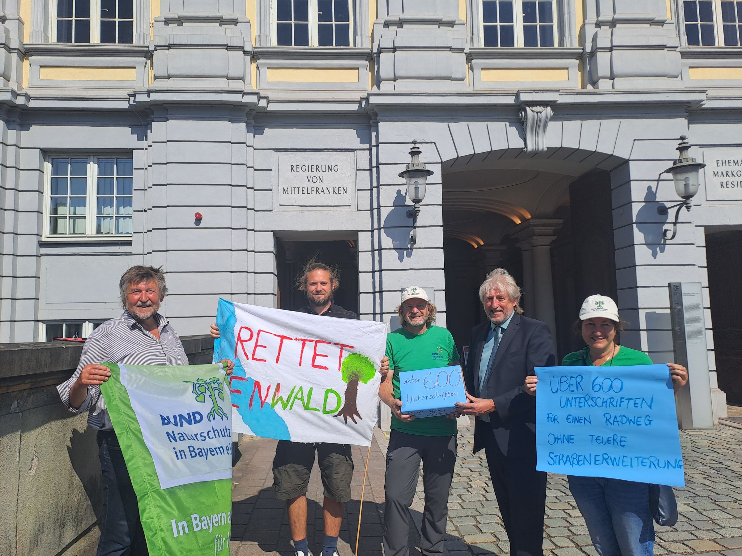 Der BUND Naturschutz in Bayern e.V. (BN) hat heute eine Unterschriftenliste mit über 600 Unterstützer*innen an Christian Gorlo, Bereichsleiter Umwelt, von der Regierung von Mittelfranken übergeben. Die Unterzeichnenden fordern ein Umdenken beim geplanten Ausbau der Staatsstraße 2240 zwischen Altdorf und Winn und sprechen sich damit deutlich gegen die vorliegende Planung aus.