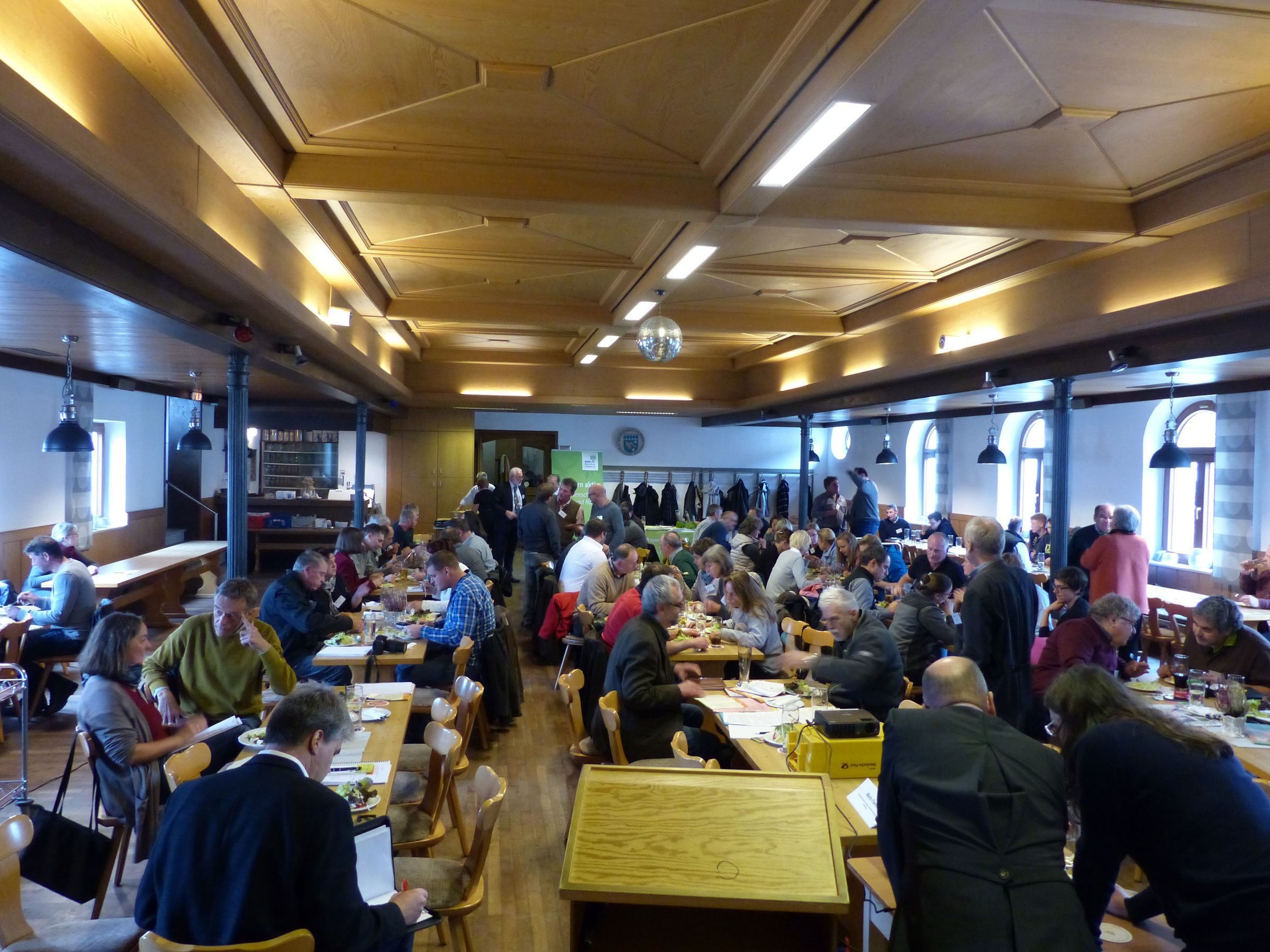 Dass es auch anders geht erklärte u.a. Karl Österle von der 'Erzeugergemeinschaft Süd für besonders art- und umweltgerechte Tierhaltung' und stellte das Label 'Neuland Bauern' unter dem Motto 'Die etwas andere Schweinehaltung' vor. Die 150 Muttersauen werden in Gruppen in einem Freiluftstall mit überdachter Sonnenterasse auf Stroh und mit freier Abferkelung ohne Kastenstand gehalten. Für die Mastschweine gilt bei Neuland ebenso die Haltung auf Stroh in einem Freiluftstall.