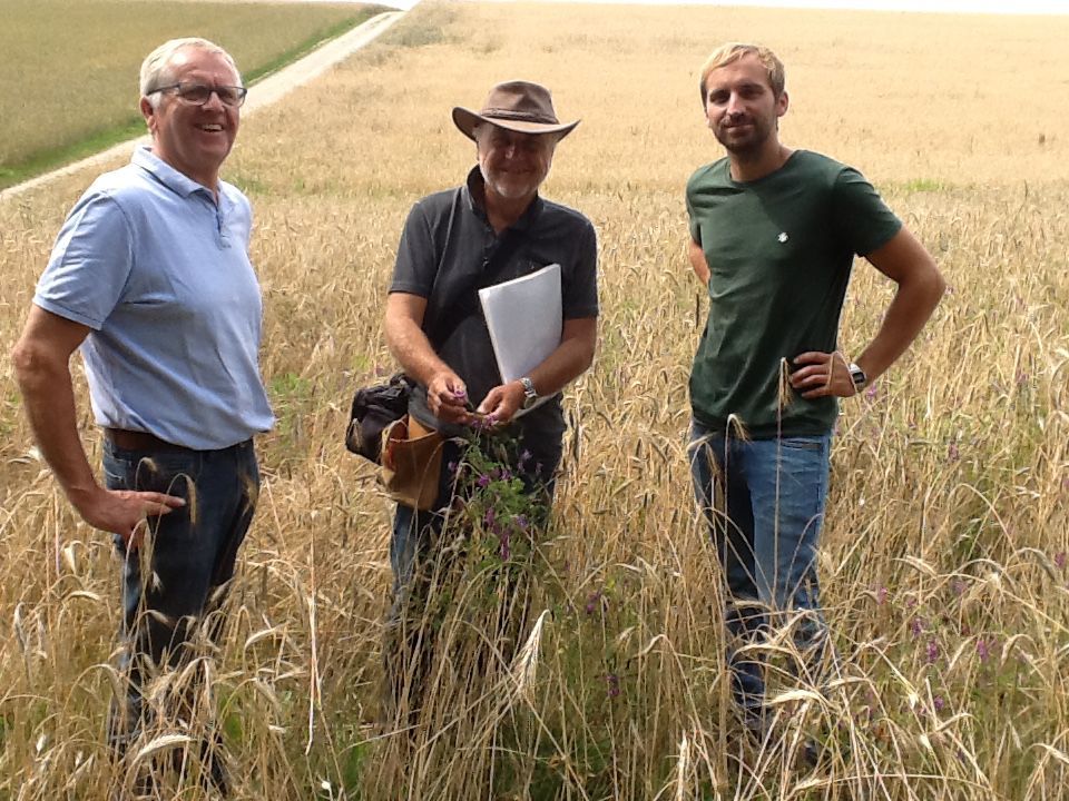 Unscheinbare Kostbarkeiten am Acker - Kartierer des Ackerwildkrautwettbewerbs in Niederbayern bei der Arbeit