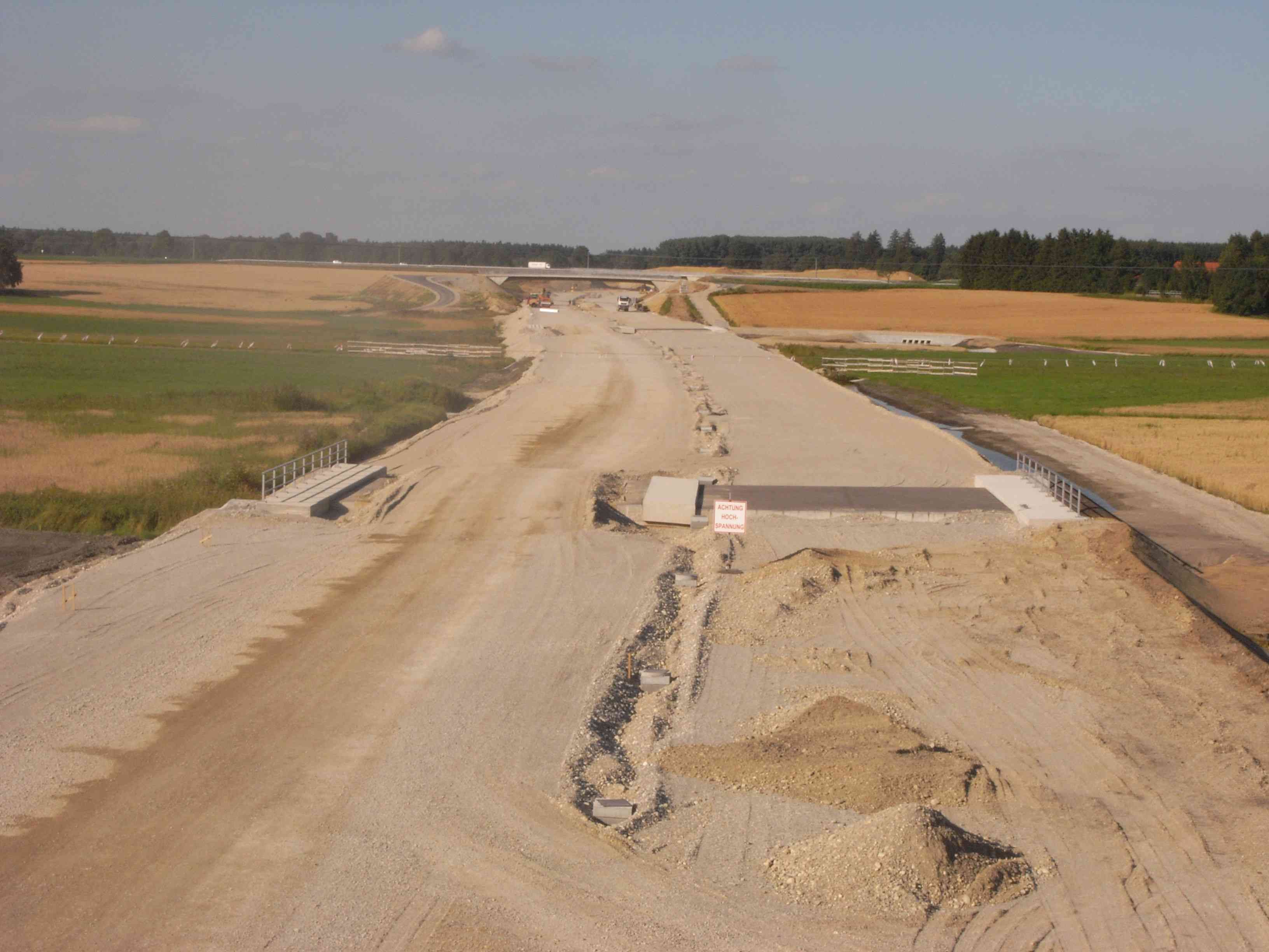 Östliches Ende der Baustelle A94 mit Blickrichtung auf den Haager Forst. Aufnahme August 2010. Foto: Margraf