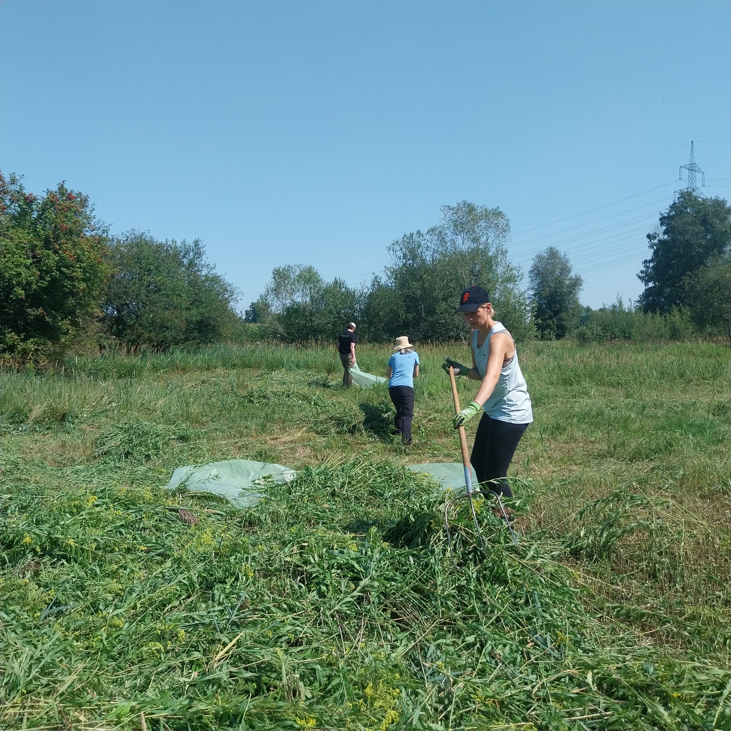Nicht immer können wir Moorflächen wiedervernässen. Selbst wenn das gelingt, braucht es seine Zeit, bis sich im renaturierten Moor wieder ein Gleichgewicht eingestellt hat. So lange erhalten und optimieren wir die Lebensräume durch Grünlandnutzung und aufwändige Pflege: Wir entfernen untypische Bäume und Sträucher, mähen Streuwiesen und legen Biotope für Arten an. Diese Pflegearbeiten werden zum Großtteil ehrenamtlich ausgeführt, zum Teil teilweise unterstützen uns Landwirte.