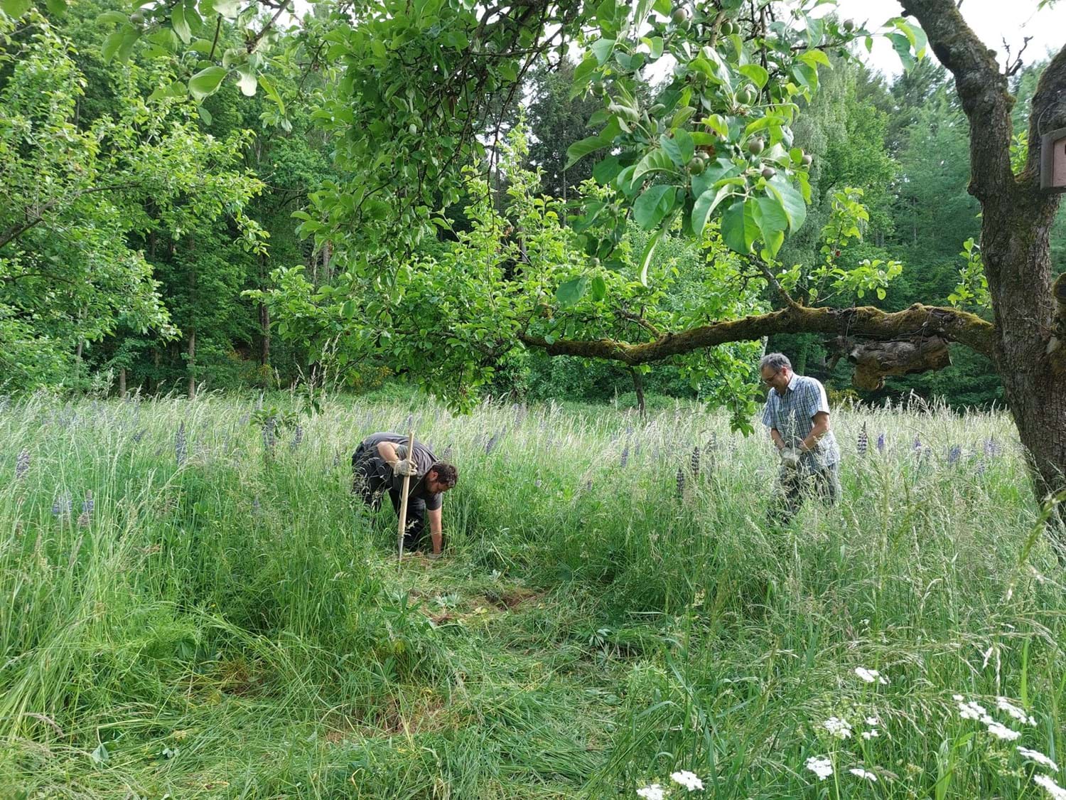 Andrea Dietrich führt über die Streuobstwiese der Ortgruppe Hummelgau in Oberfranken