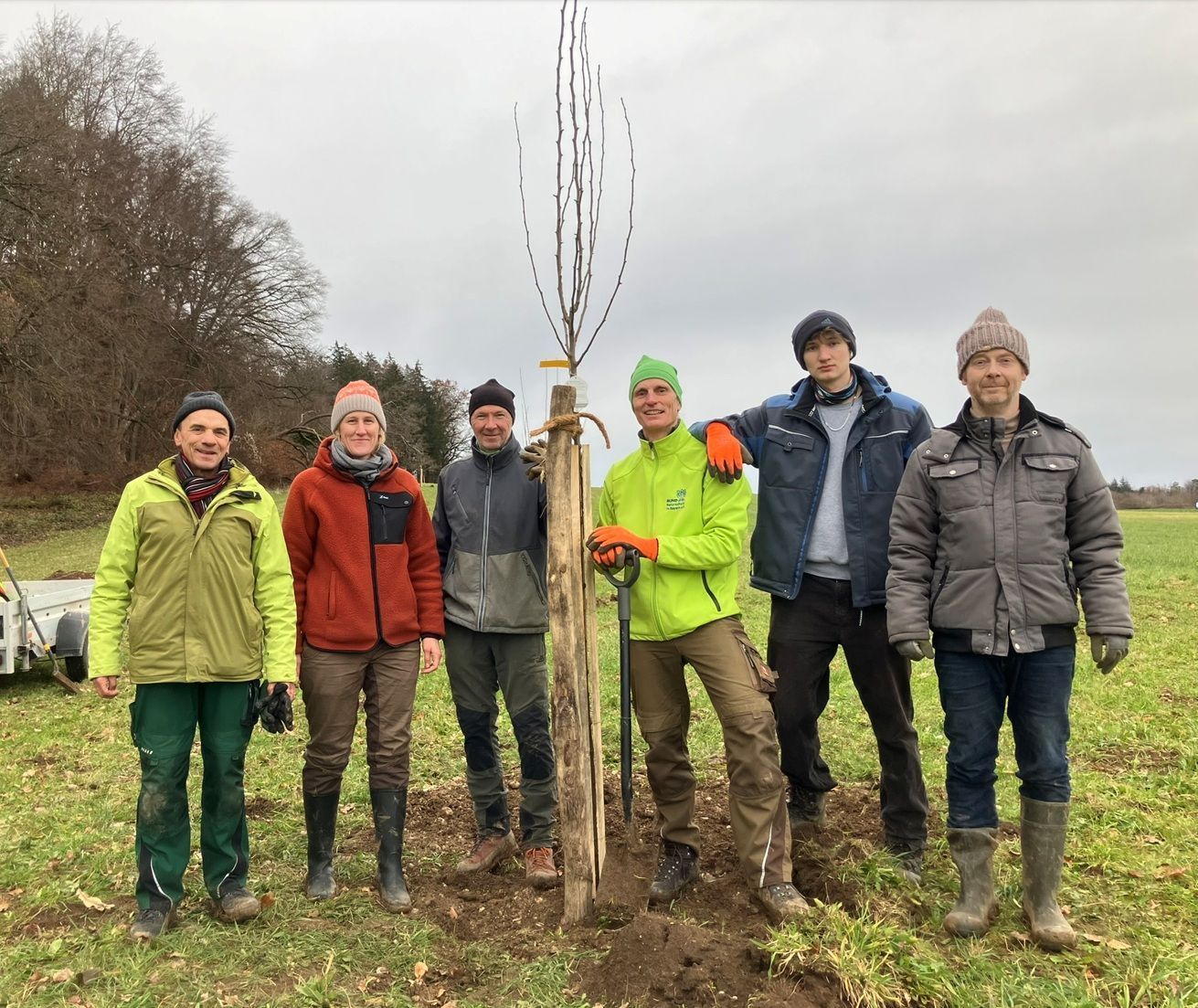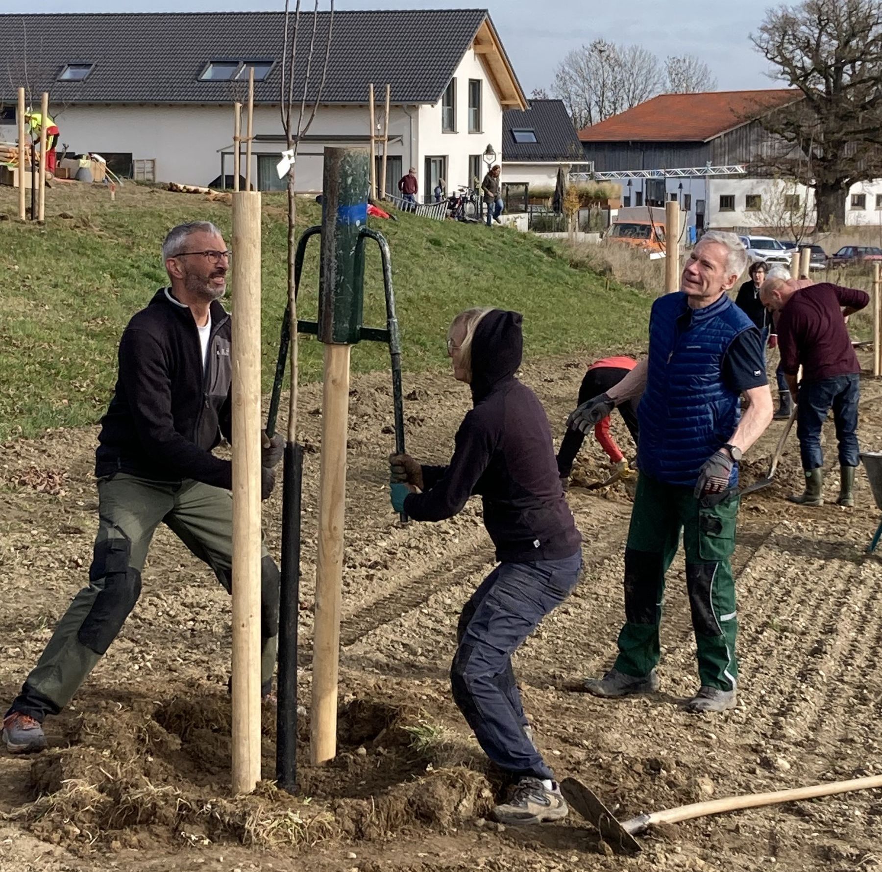 Neue Streuobstwiese in Hanfeld: Die meisten Obstbäume werden im Spätherbst gepflanzt. Bereits kurz nach Startschuss des Projektes Ende 2024 wurde im Landkreis Starnberg zusammen mit der BN-Kreisgruppe München und einem Vertreter der Schafhaltervereinigung Bad Tölz-Wolfratshausen eine neue Streuobstwiese mit 22 Bäumen angelegt.