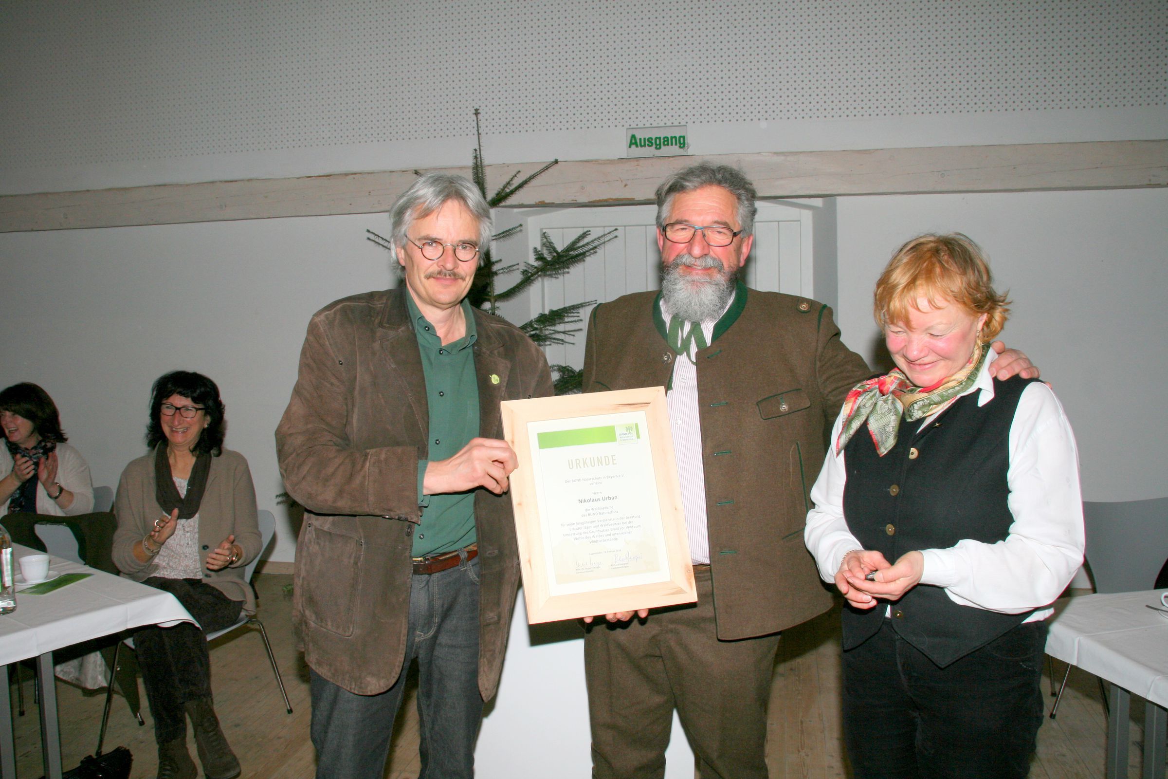 Als Revierjagdmeister hat sich Klaus Urban in vielfältiger Weise um Wald, Jagd und Naturschutz verdient gemacht. Langjährige, besondere Verdienste hat Urban in der Beratung privater Jäger und Waldbesitzer bei der Umsetzung des Grundsatzes Wald vor Wild zum Wohle des Waldes und artenreicher Wildtierbestände. Er trägt somit wesentlich dazu bei, dass es in Bayern immer mehr positive Beispiele in Wäldern gibt, in denen die angesichts des Klimawandels notwendigen Baumarten wie die Weißtanne oder die Eiche auch nachwachsen können, ohne dass sie verbissen werden.