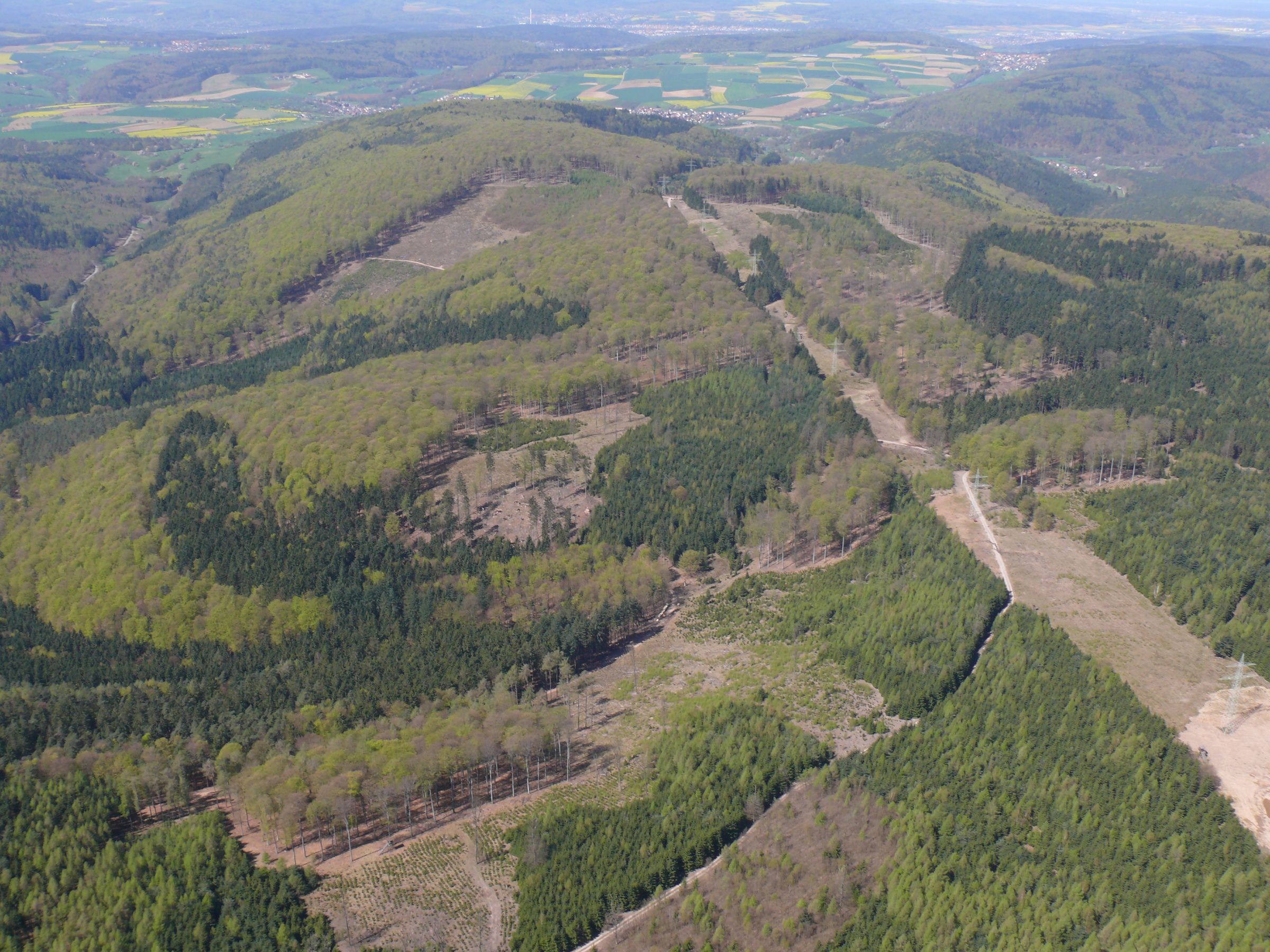 großflächige Nadelholzpflanzungen nach Kahlschlägen